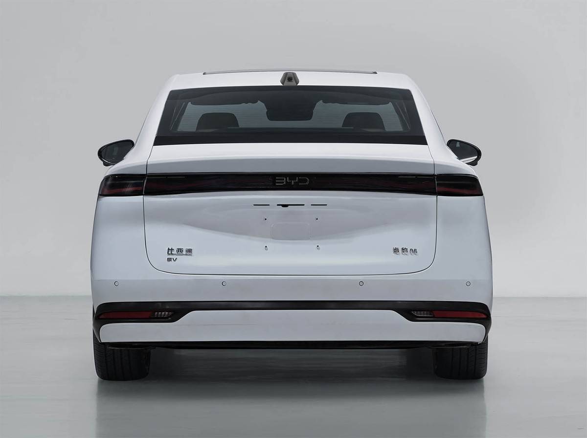 设计方面,新海豹06 EV的外观采用了流线动感的风格,相比现款,车身更显修长,车头也明显更厚实。前脸在设计上弱化了前格栅的视觉效果,保留了两侧的导流槽,前大灯组的尺寸有所加大,更显精神。车尾同样采用了配备贯穿式尾灯,不过相比现款,设计上更为简洁,质感更厚实。