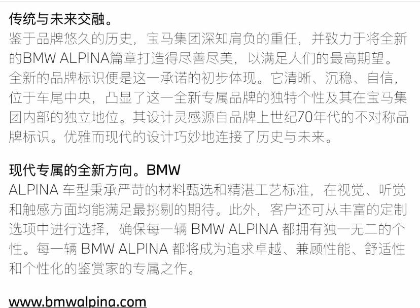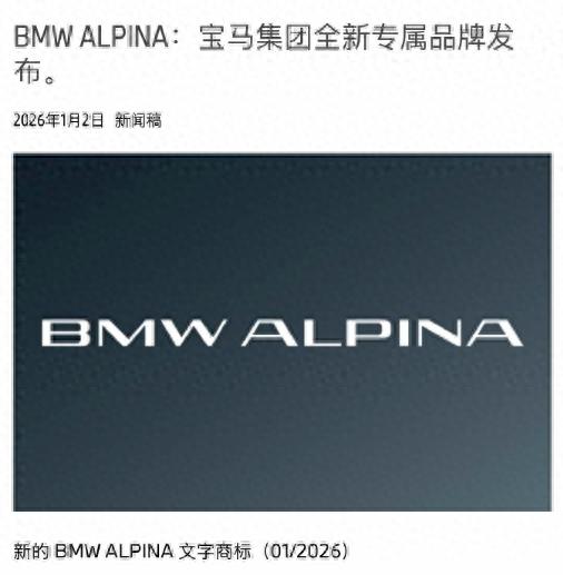 进入2026年,宝马发布了全新专属品牌ALPINA。