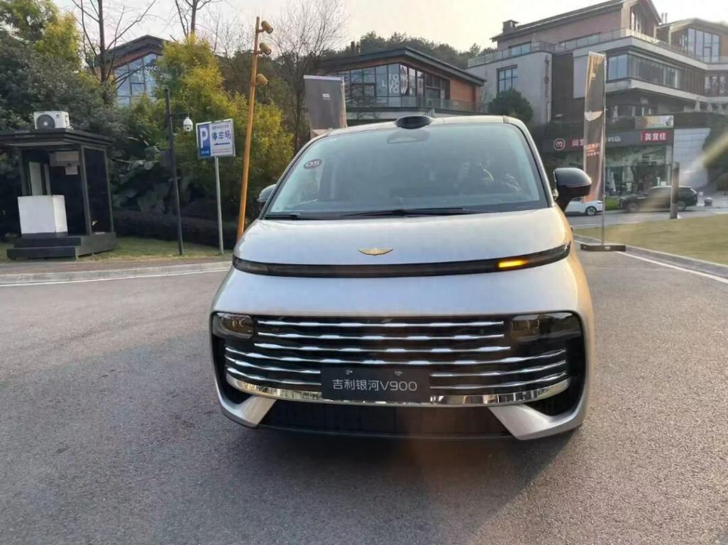 豪华大气,是吉利银河V900给人的第一印象。该车外观上延续翼真L380设计语言,前脸大面积采用银色线阵格栅,搭配贯穿式灯组和分体式远近光灯,显得简洁且富有层次感,再加上24k曜金天马车标的衬托,让这款车的豪华气场十足。