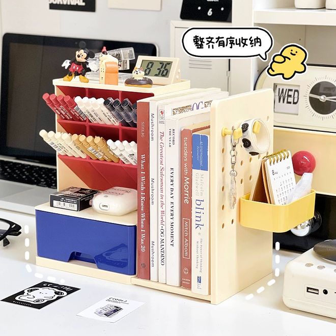 笔乱丢,文具找不着,书堆成山?这个分区书架,我的神!之前笔、本子、文件全堆在一起,找啥啥没有。现在好了,各自有家,还带个小抽屉。桌面一下子空了,心情都变好了。