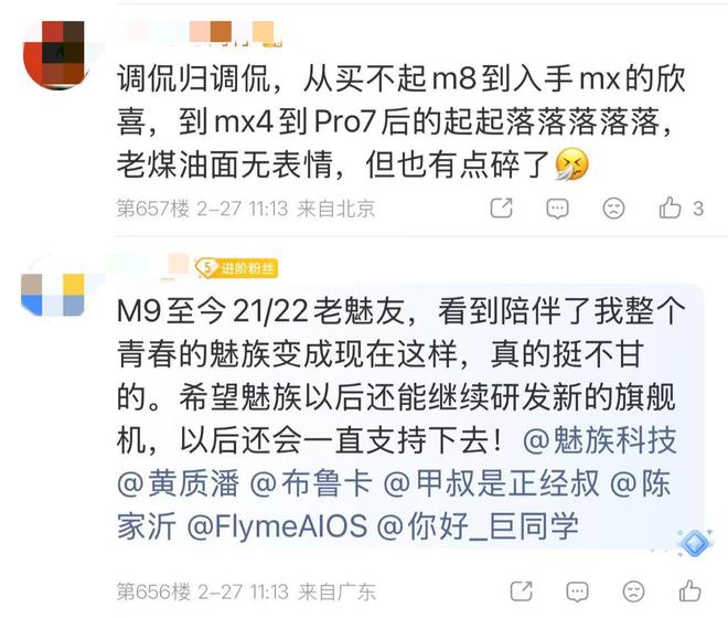 在魅族的评论区中,有不少魅族的粉丝“煤油”在与魅族手机告别,还有网友说“魅族陪伴了他整个青春。”
